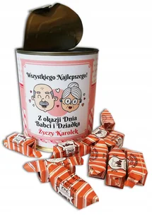 SŁODKI PREZENT NA DZIEŃ BABCI I DZIADKA SPERSONALIZOWANA PUSZKA PEŁNA PYSZNYCH KRÓWEK! NAJWYŻSZA JAKOŚĆ WYKONANIA. Metalowa puszka Puszka o pojemności: 0,9 l...