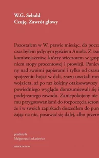 „Czuję. Zawrót głowy” to cztery teksty o podróży. Autor wędruje szlakiem Stendhala, sprawdza, jaki dzień wybrał Casanova na ucieczkę z więzienia, z Kafką przebywa u wód i idzie do kina, okrężnymi drogami trafia w głąb swojego dzieciństwa. Proza Sebalda kocha się w szczegółach. Warto zatrzymać uwagę na mijanym wzgórzu, na przechodniu spacerującym pod parasolem, na współpasażerach w przedziale pociągu, na kloszardach z dworca kolejowego. Literacka podróż nasączona konkretem służy zachowaniu w pamięci wydarzeń teraźniejszych i przypomnieniu minionych, zarówno z historii prywatnej sprzed kilku czy kilkunastu lat, jak i dawniejszej, wspólnej wszystkim ludziom, przekazywanej w listach i dziennikach.