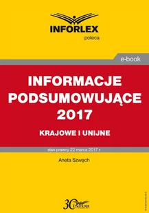 W 2017 r. zmieniły się zasady składania informacji podsumowujących zarówno krajowych, jak i unijnych. Informacje te muszą być składane wyłącznie w formie elektronicznej i tylko za okresy miesięczne. Ponadto nowa grupa podatników została objęta obowiązkiem składania krajowych informacji podsumowujących. To podatnicy świadczący usługi budowlane objęte odwrotnym obciążeniem. Publikacja zawiera praktyczne omówienie zasad wypełniania krajowych oraz wewnątrzwspólnotowych informacji podsumowujących po zmianach od 1 stycznia 2017 r.