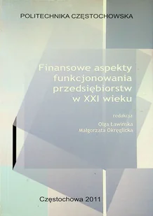 Tytuł: Finansowe aspekty funkcjonowania przedsiębiorstw w XXI wieku Olga Ławińska (red.) Rok wydania: 2011 Rodzaj okładki: Miękka Autor: Olga Ławińska (red.)