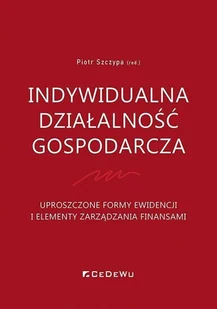 Indywidualna działalność gospodarcza. Piotr Szczypa. Książka. Publikacja poświęcona jest zagadnieniom związanym z prowadzeniem indywidualnej działalności gospodarczej w Polsce, ze szczególnym uwzględnieniem uproszczonych form ewidencji oraz podstaw zarządzania finansami przedsiębiorstwa Autor. . .