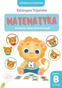 Pozycja z serii Edukacja domowa, przygotowana z myślą o kształtowaniu i rozwijaniu kompetencji matematycznych dziecka w wieku 1-2 lat. W tym okresie dziecko opanowuje niezwykłą umiejętność chodzenia i od tej pory świat staje przed nim otworem. Matematyka jest nieustannie obecna w jego otoczeniu, a doświadczenia, które zdobywa, pozwolą mu w przyszłości zbudować abstrakcyjne matematyczne wyobrażenia oraz symbole. Dzięki tej książeczce dziecko może poznawać cyfry od 1 do 5 i doświadczać, że cyfra jest znakiem graficznym liczby, a także rozpoznawać i nazywać kolory oraz układać obrazki z dwóch elementów. Wspólna zabawa w powtarzanie i liczenie, z wykorzystaniem ćwiczeń usprawniających narządy artykulacyjne, to nie tylko elementarna nauka matematyki, ale przede wszystkim aktywność pobudzająca wszechstronny rozwój dziecka.