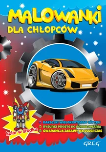 Malowanki dla chłopców to pozycja przygotowana z myślą o wszystkich chłopcach, którzy lubią kolorować. Tematyka jest dostosowana do zainteresowań chłopców, dlatego w książeczce są ciekawe samochody (bolid, samochody wyścigowe, monster truck), motory, samoloty, rakiety, pojazdy budowlane, robot.