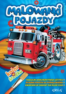 "Malowanki. Pojazdy" to malowanka dla wszystkich chłopców, których fascynuje motoryzacja. W środku znajduje się wybór najciekawszych samochodów i pojazdów - są więc samochody sportowe, ekskluzywne, maszyny budowlane, radiowóz, motor i wiele innych. Do każdej ilustracji jest zamieszczony kolorowy wzór oraz dołączona naklejka. To prawdziwa gratka dla fanów samochodów! Rysunki są proste do pomalowania i duże, dlatego z powodzeniem mogą po nie sięgać nawet najmłodsze dzieci.