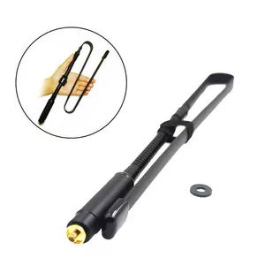 Ważne - antena potrzebuje 7mm wolnego miejsca pomiędzu gniazdem anteny a ew. gałką w radiotelefonie. W zestawie znajduje się gumowa uszczelka niwelująca ew. prześwit pomiędzy anteną a korpusem radiotelefonu. Antena pasuje do radiotelefonów: