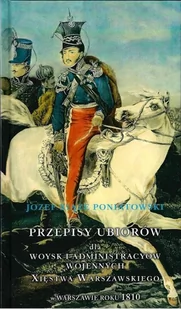 PRZEPISY UBIORÓW DLA WOYSK I ADMINISTRACYOW WOJENNYCH Xięstwa Warszawskiego w WARSZAWIE ROKU 1810 JOZEF XIĄŻE PONIATOWSKI ILUSTRACJE W KOLORZE K. WAWROSZA JOZEF XIĄŻE PONIATOWSKI MINISTER WOYNY Generał Dywizyi, Naczelny Dowódzca Woysk Polskich Xięstwa Warszawskiego, Orderów Wielkiey Wstęgi Legionu honorowego, wielkiego Krzyża Woyskowego Polskiego, Neapolitańskiego, Orła Białego, i innych Kawaler ROZKAZ OKOLNY Przesyłaiąc do wiadomości Woyska, któremu mam zaszczyt dowodzić, przepis Munduru przez JEGO KRÓLEWSKĄ Mość Pana mego Miłościwego dla Generałów, Officyerów wszelkiey Broni, Inspektorów i Pod-Inspektorów Popisów, Kommifsarzów zwierzchnych i zwyczaynych Woiennych, Płatników, Inspektorów, i Urzędników Zdrowia, Officyalistów żywności i Szpitalów; zgoła dla wszelkich Stopniów i Urzędów rozmaitego powołania i obowiązków w Woysku i przy Woysku będących, ustanowiony; do których każdego oddzielnie Nayiaśnieyszy Pan w miarę Jego Ceny przywiązywał powagę, godność i Uszanowanie, famą tylko miarą, przełożeństwa i użytku rozróżnione. -- Zalecam, żeby ten przepis był od każdego Woyskowego względnie fwego ftosunku, w Służbie, w Urzędowaniu, w wszelkich Uroczyftościach, paradach i w służbowym przedstawieniu się swoim Zwierzchnikom, ściśle zachowany pod odpowiedzią za nieposłuszeństwo Woyskowe. Czego przykład i doftrzeganie porucza się naczelnym Dowódzcom i naczelnym Urzędnikom.