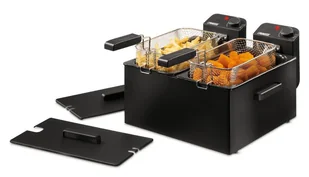 Frytkownica PRINCESS 183028 pozwala usmażyć naraz do 1,8 kg frytek w dwóch koszach. Ten podwójny model jest bardzo przydatny, ponieważ możliwe jest gotowanie w tym samym czasie dwóch różnych produktów.
