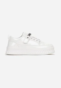 Białe Buty Sportowe na Platformie z Łańcuszkiem i Wkładką ze Skóry Naturalnej Khapalle