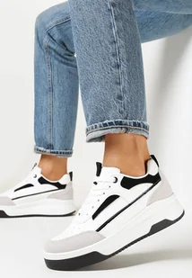 Biało-Czarne Sneakersy na Grubej Podeszwie Nadin
