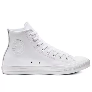 Trampki unisex Converse Chuck Taylor All Star Hi Mono Leather 1T406 – białe Kultowe trampki Converse Chuck Taylor All Star Hi Mono to model, który nieustannie cieszy się popularnością. Teksturowana cholewka ze skóry Luxe zapewnia trwałość produktu, a także oryginalny wygląd. Buty posiadają wulkanizowaną i wzmocnioną gumową podeszwę, która zapewnia wygodę noszenia przez cały dzień. Całość dopełnia charakterystyczna naszywka na kostkę All Star. Kultowe trampki Converse Chuck Taylor All Star z wysokim profilem doskonale dopełnią czapki z daszkiem, które znajdziesz w naszym asortymencie.