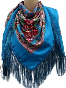 Chusta góralska ludowa folk damska turkus z różem Chusta góralska ludowa folk damska turkus z różem Chusta góralska w kształcie kwadratu o wymiarach 110 cm n...