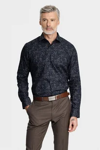 Czarna koszula męska01838C90FSA we wzór jesiennych kwiatów, wykonana z miękkiej bawełny.