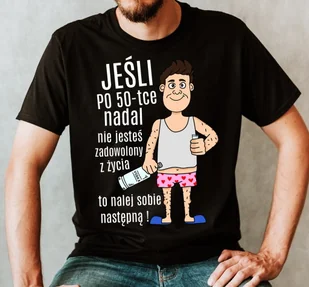 Koszulka na 50 urodziny idealny prezent na pięćdziesiątkę. Jeżeli po 50-tce nadal nie jesteś zadowolony z życia to nalej sobie następną ! T-shirt męski wykonany z bardzo dobre jakości materiałów. Materiał : 100 % bawełna .