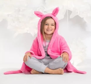 Milutki szlafrok w kolorze różowym wykonany z ciepłego materiału dla dziewczynki. W pasie posiada pasek do wiązania. Idealny na okrycie po kąpieli.