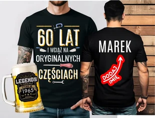 Prezent na 60 urodziny - ZESTAW KOSZULKA NA 60 Z IMIENIEM ORAZ KUFEL - 60 lat i wciąż na oryginalnych częściach