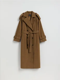 Reserved - Długi trencz z paskiem - brązowy