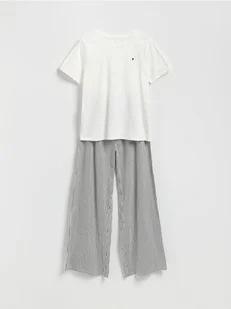 Reserved - Dwuczęściowa piżama z haftem - złamana biel