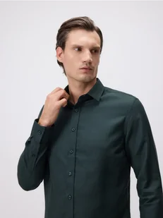 Reserved - Koszula slim z bawełny egipskiej - ciemnozielony