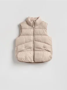 Kamizelka o prostym kroju, wykonana z pikowanej tkaniny z wypełnieniem.