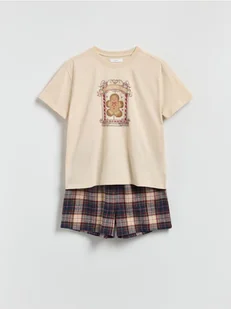 Piżama składająca się z t-shirtu i szortów, uszyta z bawełny.