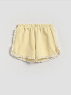 Spodenki o regularnym kroju, wykonane z bawełnianego materiału.