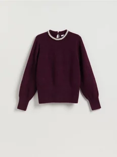 Reserved - Sweter z aplikacją - ciemnofioletowy