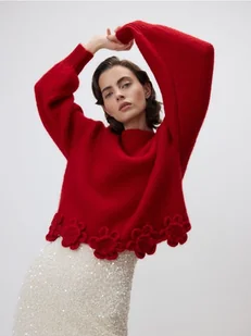 Reserved - Sweter z kwiatową aplikacją - czerwony