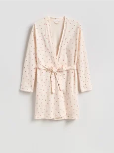 Reserved - Wzorzysty szlafrok z paskiem - kremowy