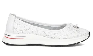Białe skórzane baleriny damskie.