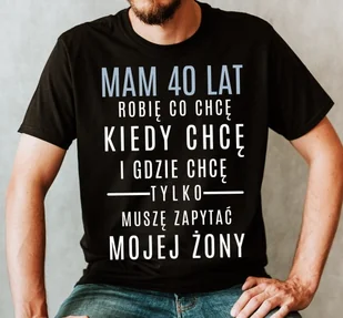 KOSZULKA NA 40 URODZINY Z FAJYM NADRUKIEM Fajna koszulka męska z nadrukiem na prezent na czterdzieste urodziny dla kolegi / szwagra / męża. Materiał: bawełna
