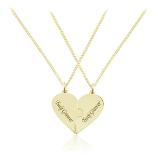 Srebrne naszyjniki Pół Serca W skład zestawu wchodzą dwa naszyjniki z dwiema zawieszkami składajacymi się w całe serduszko. W obu naszyjnikach jest delikatny łańcuszek przeznaczony dla Pań, dlatego idealnie nadaje się jako prezent np. dla mamy i córki, bądź przyjaciółek. Przykładowe grawerunki na zdjęciach 2 i 3. Wykonany ze srebra pr.
