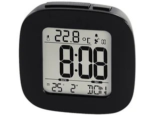 Zegar Hama DCF z budzikiem Rc45 Czarny Kompaktowy zegar z budzikiem oraz czytelnym wyświetlaczem, na którym można odczytać godzinę, datę oraz temperaturę. Korzyści: Zegar sterowany radiowym sygnałem czasowym DCF z automatyczną synchronizacją czasu z najbardziej precyzyjnym zegarem na świecieStrefę czasową można ustawić ręcznie, jeśli czas radia DCF różni się od strefy czasowejSzybki alarm (speed) budzi śpiochów rosnącym tempem sygnału budzenia