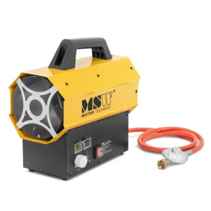 Niezależnie od tego, czy jest to magazyn, czy namiot imprezowy, za pomocą nagrzewnicy gazowej MSW szybko i skutecznie ogrzejesz duże powierzchnie. Dzięki mocy 20 kW i temperaturze wyjściowej 450°C szybko osiągniesz żądaną temperaturę. Ustawisz ją za pomocą wyświetlacza LED. Termostat sprawdza temperaturę zewnętrzną i włącza nagrzewnicę warsztatową, jeśli spadnie poniżej ustawionej wartości. Zapłon działa w pełni automatycznie. Przy pełnej mocy dmuchawa gazowa wytwarza 320 m³/h gorącego powietrza. Wentylator rozprowadza je równomiernie w pomieszczeniach. Taka wydajność gwarantują przyjemne temperatury w pomieszczeniach o powierzchni do 160 m². Urządzenie postawisz w najlepszym miejscu lub wygodnie przetransportujesz je w inne za pomocą jednego uchwytu.