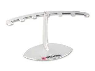 Akrylowy stojak na noże Böker Manufaktur Solingen z logo Boker, przeznaczony na maksymalnie 6 noży stałych.