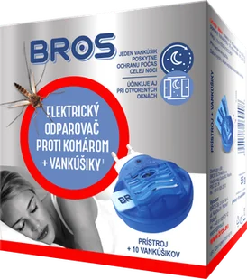 Bros Elektryczny Waporyzator z Matami Przeciw Komarom – 10 szt. Kompletna ochrona wewnętrzna przed latającymi owadami. Elektryczny waporyzator Bros to skuteczne rozwiązanie do odstraszania komarów i innych latających owadów w Twoim domu. Zestaw zawiera 10 aktywnych mat odstraszających, z których każda chroni pomieszczenia do 20 m² przez około 10 godzin. Urządzenie działa efektywnie nawet przy włączonym świetle i otwartych oknach, zapewniając spokój bez ograniczania codziennych czynności.