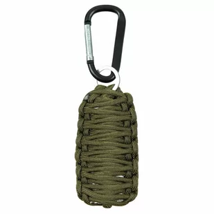 Praktyczny zestaw survivalowy z karabińczykiem składający się z przydatnych przedmiotów. Całość owinięta została nylonową linką spadochronową (paracord) charakteryzującą się wysoką wytrzymałością.