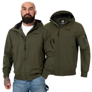 Kurtka z kapturem przejściowa Pit Bull Longwood '24 - Oliwkowa S