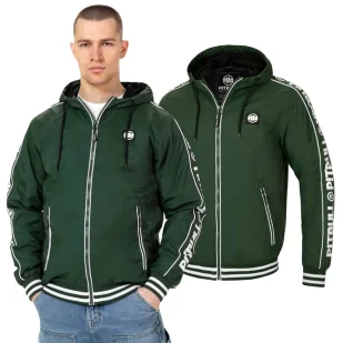 Kurtka z kapturem przejściowa Pit Bull Whitewood '24 - Ciemnozielona XL