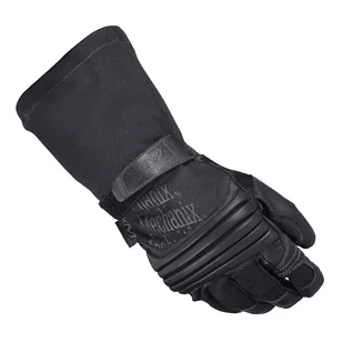Cechy: - zabezpieczane rzepem niskoprofilowe zapięcie - osłona wierzchu dłoni z pianki EVA 5 mm - wierzch dłoni z materiału Nomex® - długi mankiet - zszywane nicią z Kevlaru® - możliwość odcięcia materiału na palcu wskazującym - wnętrze dłoni z ognioodpornej skóry koźlej o grubości 0,6 mm - wywrócona zamszową stroną skóra w dolnej części dłoni - możliwość obsługi ekranów dotykowych - pętle na krawędziach mankietów - możliwość prania w pralce