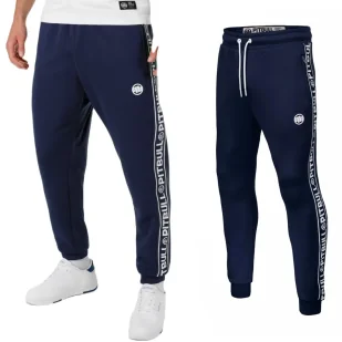 Spodnie dresowe Pit Bull Oldschool Polly-Terry Tape Logo '24 - Granatowe L