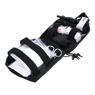 Zrywana kieszeń medyczna wykonana została z Cordury 500D, mocowana za pomocą dwóch troków montażowych, wyposażona w dwukierunkowy zamek, panel z rzepem, umieszczoną z przodu drugą przegrodę na mniejsze wyposażenie i powierzchnię z rzepem ze znakiem krzyża.