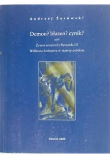 Tytuł: Demon Błazen Cynik Andrzej Żurowski Rok wydania: 2000 Rodzaj okładki: Miękka Autor: Andrzej Żurowski Wydawca: Gdańsk