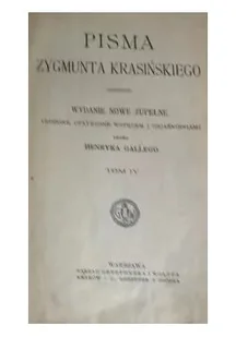 Tytuł: Pisma Zygmunta Krasińskiego, wyd. IV Zygmunt Krasiński Rok wydania: - Rodzaj okładki: Twarda Autor: Zygmunt Krasiński Wydawca: Nakład Gebethnera i Wolfa
