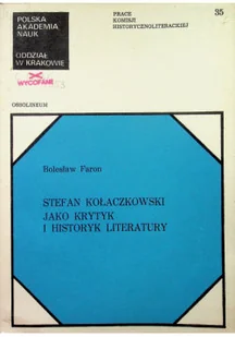 Tytuł: Stefan Kołaczkowski jako krytyk i historyk literatury Bolesław Faron Rok wydania: 1976 Rodzaj okładki: Miękka Autor: Bolesław Faron