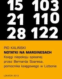 Marginesy owych stronic - w tym wypadku konkretnych stronic zapisanych ręką Pessoi - Piotr Kaliński pokrywa linorytami, dając nam do zrozumienia, że pisać można także obrazem, a pojęcie notatki odnosi się nie tylko do słowa, ale też do form wizualnych. Przepisuje - podobnie jak kopiści - kawałki istniejącego tekstu i dodaje do nich coś w rodzaju iluminacji lub ilustracji. Ale z założenia powiela wyłącznie fragmenty, pojedyncze sentencje. Przypomina w tym nieco Borgesowskiego Pierre'a Menarda, który z niemal trzech (przepisanych słowo w słowo) rozdziałów Cervantesowskiego ,,Don Kichota" tworzy ,,własną" powieść. Jak powiada Borges, Menard wzbogacił sztukę lektury o niezwykle inspirującą technikę zamierzonego anachronizmu i błędnej atrybucji, dzięki którym dawne teksty możemy czytać tak, jakby były nam współczesne, przenosić je w nowe konteksty, ożywiać je i poddawać się ich przemożnemu wpływowi. To prawda, że bez dzieła Pessoi nie byłoby niniejszego notatnika, ale za sprawą wywrotowej praktyki celowego anachronizmu prawdziwe staje się również twierdzenie odwrotne: bez iluminacji Kalińskiego nad wieloma stronicami Pessoańskiej księgi zapadłby mrok. Czytając ją, skłonni jesteśmy przekładać słowa na obrazy. Od dziś będą to obrazy stworzone przez PIO. Grzegorz Jankowicz (ze wstępu do książki)