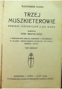 Trzej muszkieterowie (fr. Les Trois Mousquetaires) – pierwsza część trylogii o czterech muszkieterach gwardii – Atosie, Portosie, Aramisie i d’Artagnanie. Ko...