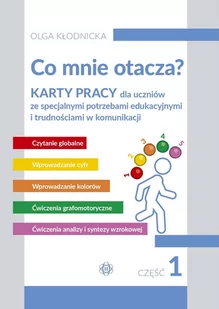 Niniejsza publikacja powstała, aby pomóc w codziennej terapii dzieci ze specjalnymi potrzebami edukacyjnymi i trudnościami w komunikacji. Materiał prezentowany na kartach pracy jest spójny i nie obejmuje zbędnych, zakłócających percepcję treści. W każdym dziale wprowadzono kilka najważniejszych słów i jedną cyfrę. Ponadto na każdej karcie znajdują się miniaturki obrazków niepozwalające zapomnieć o przerobionym już materiale. Wszystkie działy zakończone są sprawdzianami wiadomości, które pozwolą dorosłemu ocenić, czy przedstawione treści zostały przez dziecko wystarczająco dobrze zrozumiane i zapamiętane.