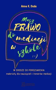 Publikacja "Masz prawo do mediacji w szkole. W drodze do porozumienia - materiały dla nauczycieli i trenerów mediacji" to opracowanie zawierające sprawdzone w praktyce materiały, gry i zabawy edukacyjne oraz gotowe narzędzia do wykorzystania w praktyce szkolnej. Znajdują one zastosowanie zarówno w pracy grupowej, jak i indywidualnej, w trakcie szkolenia mediatorów oraz na godzinach wychowawczych. Jak wskazuje autorka: "możliwości zastosowania różnych ćwiczeń i gier kończą się tam, gdzie są granice kreatywności nauczyciela/trenera".
