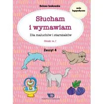 Seria logopedyczna ,,Słucham i wymawiam. Dla maluchów i starszaków" obejmuje zeszyty ćwiczeń przeznaczone dla dzieci w wieku od 3 do 6 lat. Ćwiczenia te: - rozwijają uwagę i pamięć słuchową, - doskonalą artykulację, - poszerzają słownictwo, - uczą dostrzegania rytmu i rymu, - usprawniają funkcje percepcyjno-motoryczne, - rozwijają procesy myślenia. Dwa pierwsze zeszyty serii dotyczą głosek łatwiejszych, których wymowa jest rzadziej zaburzona (,,b", ,,p", ,,t", ,,d"). W kolejnych zeszytach ćwiczone są głoski, które w rozwoju mowy dziecka pojawiają się nieco później (,,v", ,,f", ,,g", ,,k" oraz głoski syczące). Oprócz ćwiczeń prawidłowej artykulacji pojawiają się też zadania rozwijające funkcje słuchowe oraz takie, które kierują uwagę dziecka na dźwiękową strukturę słowa, jednak jeszcze w jej bardzo ogólnym rozumieniu. Bożena Senkowska, neurologopeda, pracuje w poradni psychologiczno-pedagogicznej. Zajmuje się dziećmi w wieku przedszkolnym i wczesnoszkolnym, z opóźnionym lub zaburzonym rozwojem mowy, występującym również na tle innych zaburzeń rozwoju. W swojej pracy skupia się nie tylko na rozwijaniu mowy i korygowaniu wad artykulacji, lecz także na rozwijaniu i doskonaleniu procesów myślenia oraz funkcji percepcyjno-motorycznych. Dba również o to, aby terapia była dla dziecka atrakcyjna, ciekawa i nie stała się przykrym obowiązkiem. Jest autorką serii logopedycznej ,,Sylaby, słowa, wyrazy" oraz serii dla dzieci w wieku przedszkolnym ,,Myślę i mówię".