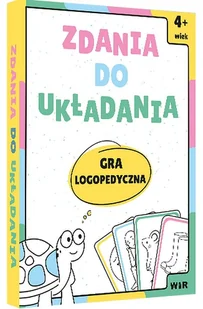 Zdania do układania gra logopedycznaWir (T) ➡️ Zabawki\Gry\Edukacyjne ✔️ Dla kogo?Zdania do układania to gra karciana dla dzieci w wieku przedszkolnym oraz wczesnoszkolnym, które mają problemy artykulacyjne, opóźniony rozwój mowy, afazję. Można je wykorzystać w pracy z dziećmi zagrożonymi dysleksją, a także z tymi, u których mowa rozwija się prawidłowo. Grając, dziecko: rozwija umiejętności tworzenia, słuchania i zapamiętywania zdań,ćwiczy prawidłową artykulację głosek i pamięć słuchową,uczy się używania poprawnych form fleksyjnych wyrazów,trenuje kreatywność, spostrzegawczość. W pudełku: 64 karty z obrazkami do ćwiczenia głosek z szeregu syczącego (s, z, c, dz) i szumiącego (sz, Ż, cz, dż),instrukcja z propozycjami zabaw.